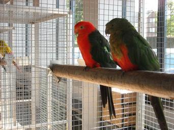 Keywords: parakeets small parrots birds pets cage red green torque couple