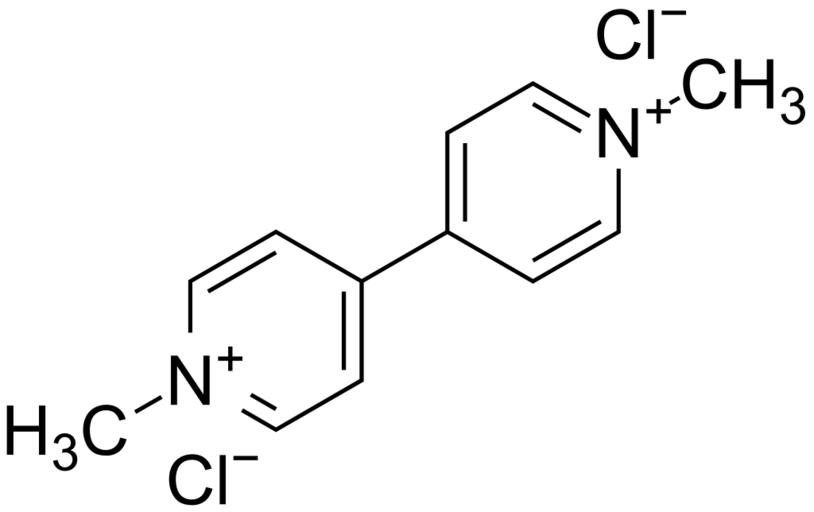 | Keywords: Paraquat 200.svg validSVG Structure of 1 1'-dimethyl-4 4'-bipyridine-1 1'-diium chloride Own 2014-04-13 Emeldir <span class signature-talk >talk</span> Chemical structure verified https //upload wikimedia org/wikipedia/commons/f/f9/Paraquat_200 svg 1S/C12H14N2 2ClH/c1-13-7-3-11 4-8-13 12-5-9-14 2 10-6-12;;/h3-10H 1-2H3;2 1H/q+2;;/p-2 FIKAKWIAUPDISJ-UHFFFAOYSA-L 1910-42-5 217-615-7 Synonyms <small>1 1'-Dimethyl-4 4'-bipyridynium dichloride 1 1'-Dimethyl-4 4'-dipyridylium chloride 1 1'-Dimethyl-4 4'-bipyridinium 1 1'-Dimethyl-4 4'-bipyridinium dichloride 1 1'-dimethyl-4 4'-Bipyridinium dichloride 1 1'-Dimethyl-4 4'-bipyridinium dichloride hydrate 1 1'-Dimethyl-4 4'-bipyridinium dichloride trihydrate 1 1'-Dimethyl-4 4'-bipyridium chloride 1 1'-Dimethyl-4 4'-bipyridylium dichloride 1 1'-Dimethyl-4 4'-dipyridylium dichloride 1 1-Dimethyl-4 4-dipyridilium dichloride 1-methyl-4- 1-methylpyridin-1-ium-4-yl pyridin-1-ium dichloride 4 4'-Bipyridinium 1 1'-dimethyl- dichloride 8CI9CI 4 4'-Dimethyldipyridyl dichloride Arial Gramoxone R Bipyridinium 1 1'-dimethyl-4 4'- dichloride Crisquat Dextrone X R Dextrone-X Dexuron Dichloride salt of paraquat Dimethyl-4 4'-bipyridinium dichloride Dimethyl-4 4'-bipyridylium dichloride Dimethyldipyridyl chloride Esgram Gramixel Grammoxone Gramoxone Gramoxone dichloride Gramoxone S Gramoxone W Gramoxone R Gramuron Methyl viologen Methyl Viologen Methyl viologen 2+ Methyl viologen reduced methyl viologen dichloride Methyl viologen dichloride Methyl viologen dichloride hydrate Methyl Viologen hydrate Methyl viologen n-hydrate Methyl Viologen trihydrate N N'-Dimethyl-4 4'-dipyridylium dichloride N N'-Dimethyl-4 4'-bipyridinium dichloride N N'-Dimethyl-gamma gamma'-bipyridylium N N'-dimethyl-gamma gamma'-bipyridylium dichloride N N'-Dimethyl-gamma gamma'-bipyridylium dichloride Ortho Paraquat CL Orthoparaquat Para-col Paraquat Paraquat from dichloride Paraquat + Linuron + Metolachlor Paraquat chloride Paraquat Cl Paraquat cl Paraquat CL tetrahydrate Paraquat dichloride Paraquat dichloride hydrate Paraquat dichloride tetrahydrate Paraquat dichloride trihydrate paraquat dichloride trihydrate Pathclear Pillarxone PP148 Preeglone R Prelude Starfire 1 5 Tota-col Toxer Total Viologen methyl- Weedol R WLN T6KJ A1 D- DT6KJ A1 G 2</small> PD-chem Chloride salts of organic compounds Paraquat |