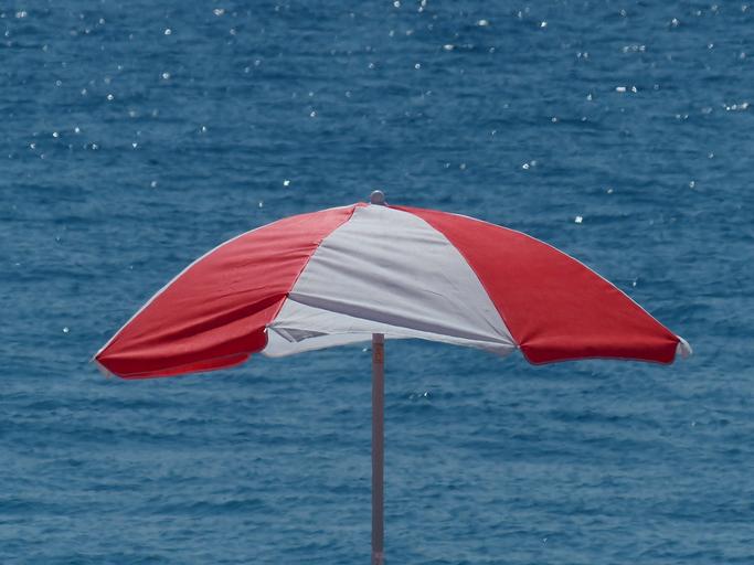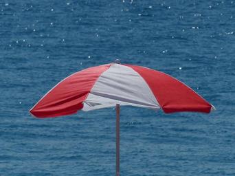Keywords: parasol screen shade tree beach sea water ocean red white