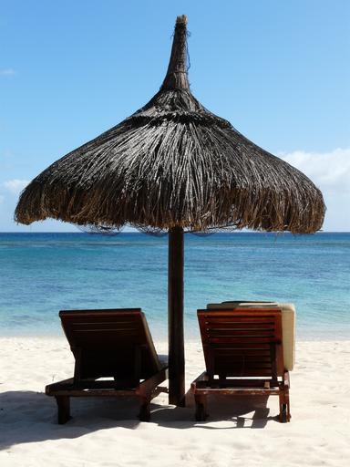 Keywords: parasol sun loungers mauritius beach sea sun holiday rest sand tourism travel destination