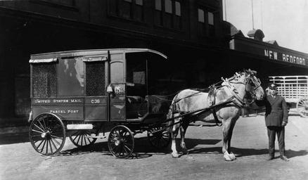 Keywords: smithsonian institution smithsonianinstitution parcel post parcelpost wagon usps bedford massachusetts new bedford newbedford united states mail unitedstatesmail transportation early 20th century early20thcentury horse carriage united states unitedstates mail national postal museum nationalpostalmuseum mail across the commons mailacrossthecommons new bedford, massachusetts newbedfordmassachusetts 1913 blackandwhite monochrome black and white Description: A postal employee posed with this brand new parcel post wagon in New Bedford, Massachusetts. The Parcel Post Service began on January 1, 1913. Creator/Photographer: Unidentified photographer Medium: Black and white photographic print Culture: American Geography: USA Date: 1913 Collection: U.S. Mail Wagons Repository: National Postal Museum Accession number: A.2008-33 Persistent URL: arago.si.edu/index.asp?con=2&cmd=1&id=194385 View more collections from the Smithsonian Institution. Description: A postal employee posed with this brand new parcel post wagon in New Bedford, Massachusetts. The Parcel Post Service began on January 1, 1913. Creator/Photographer: Unidentified photographer Medium: Black and white photographic print Culture: American Geography: USA Date: 1913 Collection: U.S. Mail Wagons Repository: National Postal Museum Accession number: A.2008-33 Persistent URL: arago.si.edu/index.asp?con=2&cmd=1&id=194385 View more collections from the Smithsonian Institution. |