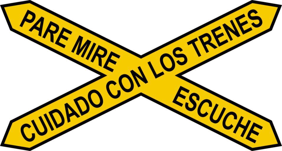 Keywords: Pare mire escuche.svg pare mire escuche cuidado con los trenes en stop look listen Watch out for trains<br/> Old railroad crossing sign of Argentina used during the first years of construction of the different railway lines in Argentina This sign was made of iron with the types embossed 1940 Dirección Nacional de Vialidad Argentina unknown vector graphics image by Fma12 CorelDraw PD-AR-Anonymous Uploaded with UploadWizard Diagrams of historic road signs of Argentina Diagrams of warning crosses in Argentina Argentina Road signs in Spanish language |
