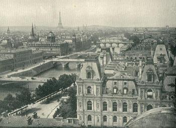 | Keywords: Paris1890sView.jpg  View of Paris original caption BIRD'S EYE VIEW OF PARIS FRANCE -- Paris the largest city in the French Republic and its capital covers an area of thirty square miles with a population of about 2 000 000 The river Seine which flows through the centre of the city is spanned by twenty-eight bridges of which the seven principal are shown in this photograph The city is noted for its fine parks magnificent churches colossal buildings and wide boulevards of which the Champs Elysees is the most famous Paris is the centre of the political artistic scientific commercial and industrial life of the nation ca 1890 Scanned from A Photographic Trip Around the World John W Illiff Co Chicago 1892 Copyright expired Creator anonymous 48 51 20 5 N 2 21 15 2 E heading WbN PD-old 1890s photographs 19th-century photographs of Paris Black and white photographs of the Eiffel Tower Eiffel Tower from a 45 degree angle Historical images of Hôtel de Ville de Paris Historical images of Pont au Change Historical images of Pont Neuf Historical images of Pont des Arts Paris in the 1890s Pont au Double Pont des Arts 1804-1979 Historical images of the Pont Saint-Michel |