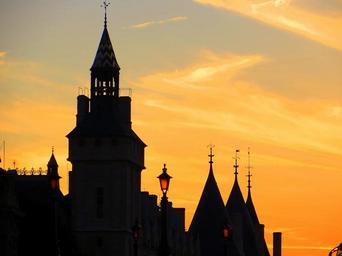 Keywords: paris dusk bank seine river france architecture french europe landmark night city twilight cityscape building famous sunset european cathedral church illuminated travel evening view attraction sky tourism parisian