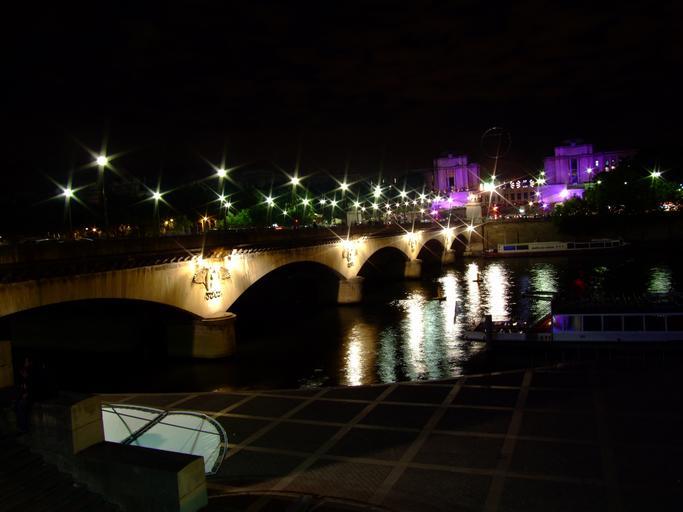 Keywords: paris france bridge river water reflections lights urban city cities outside sky dark night evening