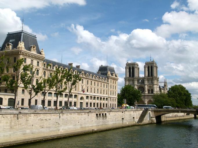 Keywords: paris france sky clouds river water buildings city cities notre dame cathedral church historic landmark destinations summer spring urban architecture