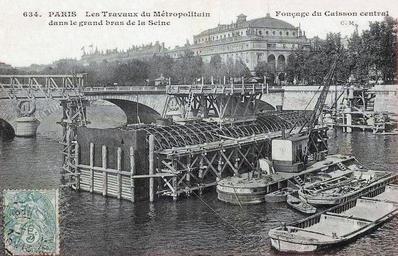 MAKE A MEME View Large Image Paris - Les travaux du Metropolitain - Foncage du caisson central.jpg Paris - Les travaux du Métropolitain - Fonçage du caisson central dans le grand bras de la Seine en 1906 ligne 4 PD-old Paris Metro Ligne 4 Postcards of the Paris Metro ...