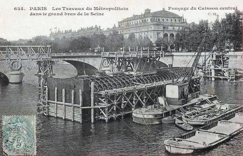 Keywords: Paris - Les travaux du Metropolitain - Foncage du caisson central.jpg Paris - Les travaux du Métropolitain - Fonçage du caisson central dans le grand bras de la Seine en 1906 ligne 4 PD-old Paris Metro Ligne 4 Postcards of the Paris Metro Metro construction in Paris Historical images of the Théâtre du Châtelet Historical images of Pont au Change
