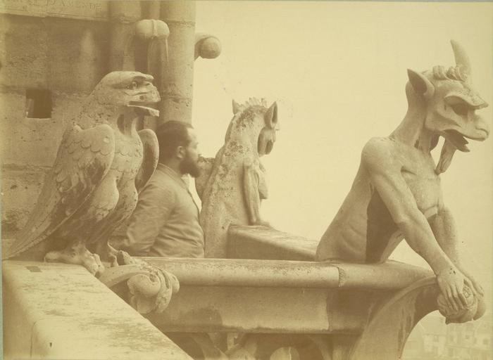 | Keywords: Paris. Notre Dame Cathedral Tower. Chimeras and Man.jpg <b>Collection</b> A D White Architectural Photographs Cornell University Library Accession Number 15/5/3090 00628 <b>Title</b> Paris Notre Dame Cathedral Tower Chimeras and Man Sculpture Date 1845-1868 Photograph date ca 1865-ca 1886 <b>Location</b> Europe France; Paris <b>Materials</b> albumen print Image 10 8268 x 14 8031 in ; 27 5 x 37 6 cm <b>Style</b> Gothic Revival <b>Provenance</b> Gift of Andrew Dickson White <b>Persistent URI</b> <a href http //hdl handle net/1813 001/5sr1 rel nofollow >http //hdl handle net/1813 001/5sr1</a> There are no known copyright restrictions on this image The digital file is owned by the Cornell University Library which is making it freely available with the request that when possible the Library be credited as its source We had some help with the geocoding from <a href http //developer yahoo com/ rel nofollow >Web Services by Yahoo </a> Flickr http //flickr com/photos/30515687 N05/3486749414 Paris Notre Dame Cathedral Tower Chimeras and Man 1865-01-01 00 00 00 http //www flickr com/people/30515687 N05 Cornell University Library User Flickr upload bot/upload-pd 07 40 23 October 2012 UTC Paris 16 PD-Old Chimeras of Notre-Dame de Paris 1886 in Paris |