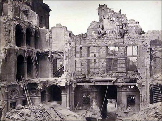 | Keywords: Pariscommune1870.jpg Andrieu J - Disasters of War Hotel de Ville Cour de Louis XIV View of the Hotel de Ville Cour de Louis XIV after the Paris Commune and Franco-Prussian War 1870-71 Source http //www vintageworks net/search/detail php/0/70/3451/1 PD-old Destructions during the Paris Commune Paris Commune photographs |