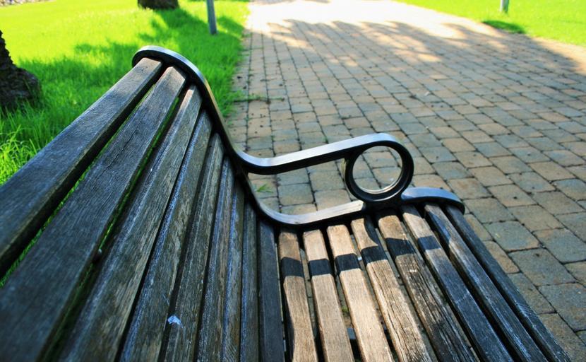 Keywords: park green path paving bench wooden rest