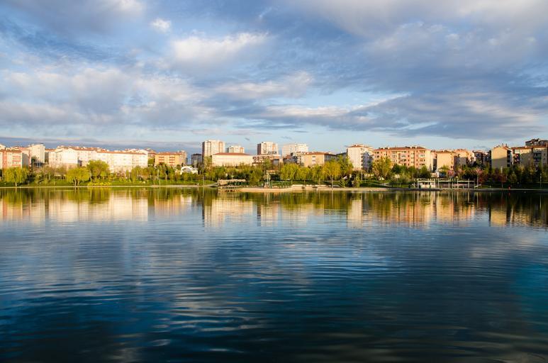 Keywords: park lake amusement park in the evening