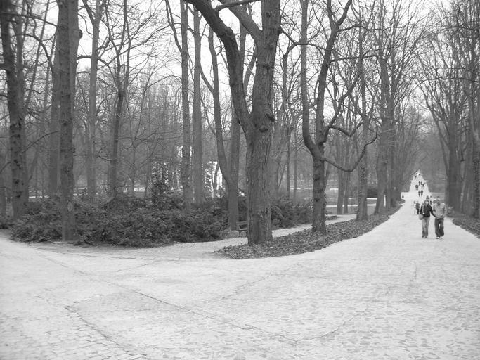 Keywords: Park lazienkowski-alejka b&w.jpg Alejka w warszawskim Parku Łazienkowskim An alley in Lazienki Park in Warsaw Own 11 03 2007 Dariusz Szczepanek Utsutsu Łazienki Park in Warsaw