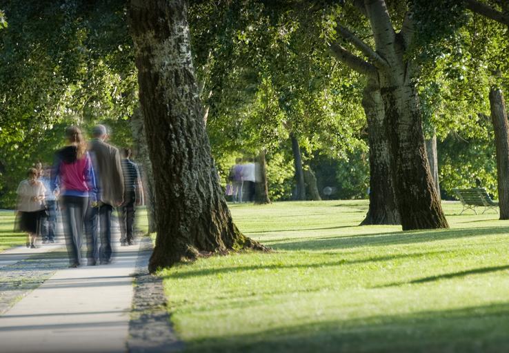 Keywords: park people hiking strolling wandering trees green walking
