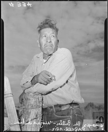 | Keywords: Parker, Arizona. Ben Butler, a Mojave and the most successful farmer on the Colorado River Indian R . . . - NARA - 536268.jpg Scope and content The full caption for this photograph reads Parker Arizona Ben Butler a Mojave and the most successful farmer on the Colorado River Indian Reservation Farmers and gardeners among evacuees of Japanese ancestry will be given opportunity to follow their callings at War Relocation Authority center on the reservation General notes 536268 Local identifier 210-G-A334 Department of the Interior War Relocation Authority 02/16/1944 - 06/30/1946 NARA-Author Albers Clem Photographer 8452194 <br /> Still Picture Records Section Special Media Archives Services Division NWCS-S National Archives at College Park 8601 Adelphi Road College Park MD 20740-6001 1942-04-10 Record group Record Group 210 Records of the War Relocation Authority 1941 - 1989 Record group ARC 537 Central Photographic File of the War Relocation Authority compiled 1942 - 1945 Series ARC 536000 File unit File unit ARC Variant control numbers NAIL Control Number NWDNS-210-G-A334 Other versions <gallery> File Parker _Arizona _Ben_Butler _a_Mojave_and_the_most_successful_farmer_on_the_Colorado_River_Indian_R_ _ _ _-_NARA_-_536268 tif tif File Parker _Arizona _Ben_Butler _a_Mojave_and_the_most_successful_farmer_on_the_Colorado_River_Indian_R_ _ _ _-_NARA_-_536268 jpg jpg </gallery> NARA-cooperation PD-USGov Notes Reference to the Poston War Relocation Center on the Mohave Tribal Reservation ” for 1940s Japanese American internment La Paz County western Arizona Mohave Men of the United States La Paz County Arizona Poston War Relocation Center Black and white photographic portraits of men Black and white photographs of Arizona |