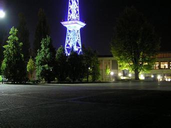 Keywords: parking radio tower berlin night tower illuminated blue architecture building transmission tower