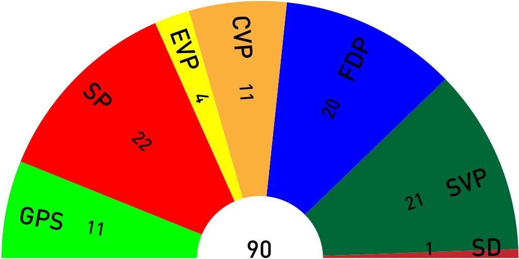 Keywords: Parlamentsspiegel Baselland 2007.svg en Election apportionment parliament of Canton Basel-Landschaft Switzerland 2007 de Parlamentsspiegel des Baselländischen Landrats 2007 own Numerus Klausus Election apportionment diagrams of Basel-Land
