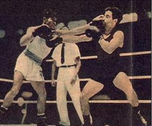 | Keywords: Pascual Perez contra Bandinelli - Final Londres 1948.jpg en Pascual Perez a Pascualito Argentine boxer Flyweight Champion of the World 1954-1960 and Olympic Gold Medal at 1948 Summer Games London In the picture he is fighting againt Italian Spartaco Bandinelli at the Olympic final es Pascual Perez a Pascualito Boxeador Argentino Campeón Mundial de Peso Mosca 1954-1960 y Medalla de Oro Olímpica en los Juegos Olímpicos e Londres 1948 En la foto está peleando contra el italiano Spartaco Bandinelli en la final olímpica El epígrafe de la foto dice Un gran combate fue el que nuestro compatriota Pascual Pérez le ganó al italiano Bandinelli para clasificarse campeón Aquí lo vemos aplicando una izquierda en directo al tiempo que el adversario tira su derecha al cuerpo la que queda corta El Gráfico Nº 1520 viernes 27 de agosto de 1948 El Gráfico 1948-08-13 PD-AR-Photo Pascual Pérez Boxers from Italy Boxing at the 1948 Summer Olympics |