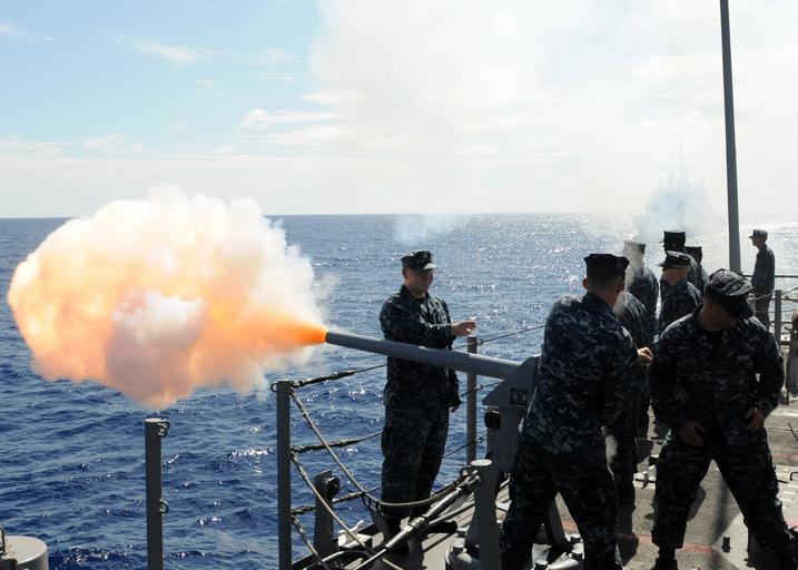 | Keywords: Pass-in-review 120928-N-NL541-206.jpg en Sailors assigned to the Oliver Hazard Perry-class guided-missile frigate USS Underwood fire the 40 mm saluting battery for a pass-in-review by Rear Adm Sinclair Harris commander of the U S 4th Fleet during his approach aboard the guided-missile cruiser USS Anzio CG 68 the flagship for UNITAS Atlantic 53-2012 UNITAS is a combined South America- and U S 4th Fleet-sponsored annual exercise that incorporates participants from Brazil Canada Colombia Dominican Republic Mexico and the United Kingdom and the United States U S Navy photo by Mass Communication Specialist 2nd Class Stuart Phillips 2012-09-28 Stuart Phillips https //www dvidshub net/image/674814 120928-N-NL541-206 2012-10-01 18 59 CARIBBEAN SEA AT SEA PD-USGov-Military-Navy Sinclair Harris USS Anzio CG-68 USS Anzio CG-68 Images from DoD uploaded by Fæ |