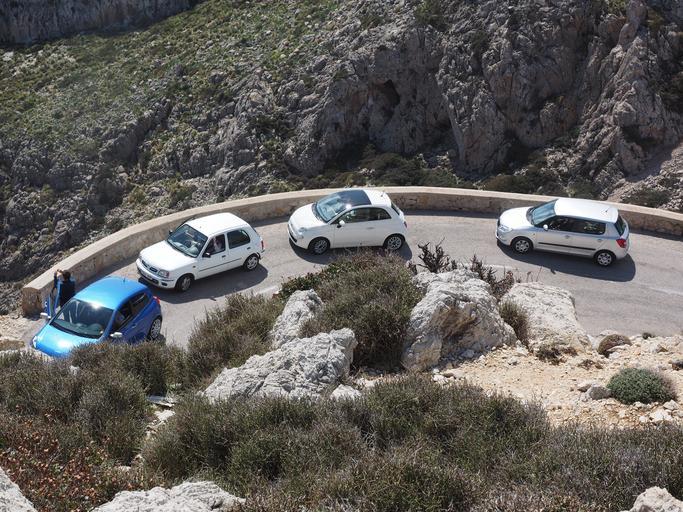 Keywords: pass road road autos traffic jam crowded mountains mallorca cap formentor serra de tramuntana