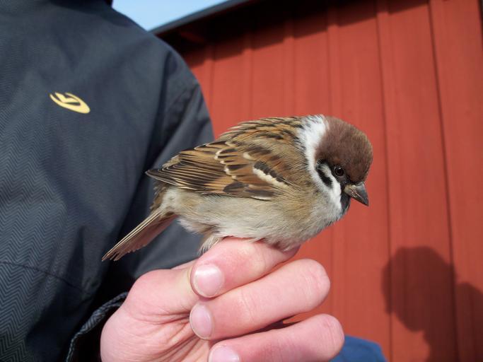 | Keywords: Passer montanus ringed by Landsort Bird Observatory-1.JPG sv En pilfink Passer montanus ringmärkt vid Landsorts fyr på Landsorts södra udde på ön Öja syd om Nynäshamn i Södermanland i Stockholms län i Sverige Denna ringmärkning utförs av Landsorts fågelstation en A Eurasian Tree Sparrow Passer montanus ringed at Landsort Lighthouse on the south cape of the island Öja Landsort south of Nynäshamn in Södermanland in Stockholm County in Sweden Landsort Bird Observatory is responsible for the ringing 2011-10-08 own Calandrella cc-zero Uploaded with UploadWizard Passer montanus Birds being ringed Passeriformes in Sweden |