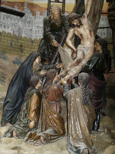 Keywords: passion good friday church christ christianity crucifixion crown of thorns jesus faith christian descent from the cross portugal sculpture death grieve mourning suffering historically