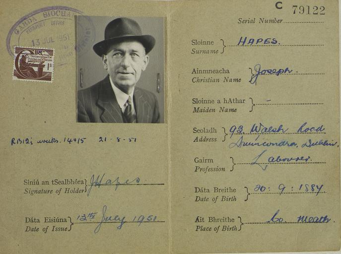 | Keywords: Passport of Joseph Heapes, Royal Irish Rifles, in later life.jpg  Joseph Heapes was my father in law He joined the Royal Irish Rifles in 1906 and stayed until 1913 In that period he was posted in India and Burma After that he worked in the Slieve Russell but he rejoined the Royal Irish Rifles in 1914 and went to France Joseph was a prisoner of war in Limburg He wrote to his sister Teresa who worked as a housemaid in Dublin She encouraged her co-workers to write to the prisoners and one of them Mary Fearon a cook from Dundalk wrote to Joeseph He became pen pals with Mary and sent her letters and a photo of himself He came home in 1919 and they married around1920/21 having met at first only by letter Joseph was also a prisoner of war in Linburg when Roger Casement tried to enlist Irishmen to fight against the British Army Over the course of the war Joseph has been gassed shot and captured exhibition history object history object type Europeana 1914-1918 Copyright information Europeana 1914-1918 PD-own upload Europeana claims no rights in its digitisation in accordance with its http //pro europeana eu/publications/the-europeana-public-domain-charter Public Domain charter Europeana 1914-1918 project place of creation place of discovery http //www europeana1914-1918 eu/en/contributions/3497 Passport of Joseph Heapes Royal Irish Rifles in later life Uploaded with GWToolset Passport of Joseph Heapes Royal Irish Rifles in later life http //www europeana1914-1918 eu/attachments/43418/3497 43418 full jpg Passports of Ireland Prisoners of war in World War I Europeana 1914-1918 batch upload needs checking |
