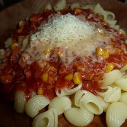Keywords: pasta noodles tomato sauce eat cheese grated cheese food carbohydrates cook lunch sauce italian