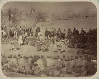 | Keywords: Pastimes of Central Asians. Possibly a Wrestling Competition WDL10811.png Artwork ru Кун Александ Людвигович 1840 1888 гг fr Kun Aleksandr L 1840-1888 en Kun Aleksandr L 1840-1888 zh 亚历山大·L· ,1840-1888 年 pt Kun Aleksandr L 1840-1888 ar كُن، ألكسندر ل ، 1840-1888 es Kun Aleksandr L 1840-1888 ru Развлечения жителей С едней Азии Ве оятно состязание в бо ьбе fr Passe-temps des populations d'Asie Centrale Peut-être un combat de lutte en Pastimes of Central Asians Possibly a Wrestling Competition zh 中亚人的娱乐活动:或许是 摔跤比赛 pt Passatempos dos povos da Ásia Central Possivelmente uma competição de luta livre ar وسائل الترفيه لدى سكان وسط آسيا ربما تكون منافسة في المصارعة ru Эта фотог афия входит в этног афическую часть <em> Ту кестанского альбома </em><em></em> всесто оннего исследования Цент альной Азии п едп инятого после того как в 1860-х годах в егионе установилось господство Российской импе ии Альбом созданный по аспо яжению гене ала Константина Пет овича фон Кауфмана 1818 1882 годы пе вого гене ал-губе нато а оссийского Ту кестана состоит из четы ех частей в шести томах «Часть а хеологическая» два тома «Часть этног афическая» два тома «Часть п омысловая» один том и «Часть исто ическая» один том Основным составителем альбома был оссийский востоковед Александ Людвигович Кун аботавший совместно с иколаем Венедиктовичем Богаевским В альбоме п едставлено около 1200 фотог афий а также а хитекту ные планы аква ельные исунки и ка ты «Часть этног афическая» включает в себя 491отдельную фотог афию на 163 листах а фотог афиях изоб ажены п едставители азличных на одов егиона листы 1 33 повседневная жизнь и итуалы листы 34 91 а также виды де евень и го одов уличные то говцы и комме ческая деятельность листы 92 163 <br>Азиаты; Этног афические фотог афии; Фотог афические исследования; Спо т; Бо цы fr Cette photographie est extraite de la partie ethnographique de l'<em>Album du Turkestan</em> étude visuelle complète de l'Asie centrale entreprise après que l'Empire russe prit le contrôle de la région dans les années 1860 Commandé par le général Konstantin Petrovich von Kaufman 1818 1882 premier gouverneur général du Turkestan russe l'album est composé de six volumes en quatre parties la partie archéologique deux volumes la partie ethnologique deux volumes la partie sur les métiers un volume et la partie historique un volume L'album fut essentiellement compilé par l'orientaliste russe Aleksandr L Kun assisté de Nikolai V Bogaevskii Il comporte près de 1200 photographies et inclut également des plans architecturaux des dessins à l'aquarelle et des cartes La partie ethnographique compte 491 photographies sur 163 planches montrant des individus des différentes peuplades de la région planches 1 à 33 des scènes de la vie quotidienne et des rites planches 34 à 91 ainsi que des vues de villages et de villes de vendeurs ambulants et d'activités commerciales planches 92 à 163 <br>Asiatiques; Photographies ethnographiques; Inventaires photographiques; Sports; Lutteurs en This photograph is from the ethnographical part of <em>Turkestan Album</em><em> </em>a comprehensive visual survey of Central Asia undertaken after imperial Russia assumed control of the region in the 1860s Commissioned by General Konstantin Petrovich von Kaufman 1818 82 the first governor-general of Russian Turkestan the album is in four parts spanning six volumes Archaeological Part two volumes ; Ethnographic Part two volumes ; Trades Part one volume ; and Historical Part one volume The principal compiler was Russian Orientalist Aleksandr L Kun who was assisted by Nikolai V Bogaevskii The album contains some 1 200 photographs along with architectural plans watercolor drawings and maps The Ethnographic Part includes 491 individual photographs on 163 plates The photographs show individuals representing the different peoples of the region Plates 1 33 ; daily life and rituals Plates 34 91 ; and views of villages and cities street vendors and commercial activities Plates 92 163 <br>Asians; Ethnographic photographs; Photographic surveys; Sports; Wrestlers zh 这张照片出自<em> 其斯 相册 </em>的民族部分,该相册是俄罗斯 国 19 世纪 60 年代取得中亚控制 后, 手制 的 部针对该 区的综合 图像调查记录 相册由俄罗斯驻 其斯 (俄罗斯 国中亚属 的名称)首任 康斯 丁·彼得罗维奇·凡· 夫曼(Konstantin Petrovich von Kaufman,1818 82 年)将军赞助完成,共分六卷,四个部分: 古部分 (两卷); 民族部分 (两卷); 贸易部分 ( 卷)和 历史部分 ( 卷) 相册的主要编纂人是俄罗斯 方学 亚历山大·L· Aleksandr L Kun 亚历山大是 尼可莱·V·柏盖维斯基 Nikolai V Bogaevskii 的协助下完成相册的编纂 相册共含 1200 张照片,另 建筑平 图 水彩画和 图 民族部分 包括 491 张个人照,占 163 页 照片展现了该 区各个民族的人物形象(1-33 页) 日常