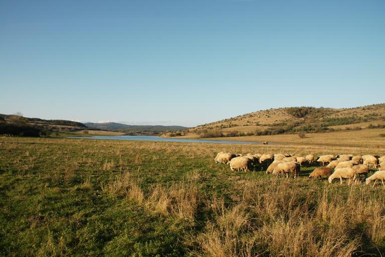 Keywords: pasture sheep landscape field fall countryside sky nature farm mountain water outdoors amazing sunny agriculture rural