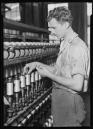 Keywords: Paterson, New Jersey - Textiles. Rayon yarn being wound from one bobbin to another and being twisted. - NARA - 518581.jpg Scope and content General notes 518581 Local identifier 69-RP-342 Federal Works Agency Work Projects Administration National Research Project ca 1941 - ca 1942 NARA-Author Hine Lewis Wickes 1874-1940 Photographer 1122914 <br /> Paterson Passaic New Jersey United States North and Central America inhabited place 4202736 40 917 -74 167 <br /> Still Picture Records Section Special Media Archives Services Division NWCS-S National Archives at College Park 8601 Adelphi Road College Park MD 20740-6001 1937-03-18 Record group Record Group 69 Records of the Work Projects Administration 1922 - 1944 Record group ARC 398 Lewis Hine Photographs for the National Research Project compiled 1936 - 1937 Series ARC 518291 File unit File unit ARC Variant control numbers NAIL Control Number NWDNS-69-RP-342 Other versions <gallery> File Paterson _New_Jersey_-_Textiles _Rayon_yarn_being_wound_from_one_bobbin_to_another_and_being_twisted _-_NARA_-_518581 tif tif File Paterson _New_Jersey_-_Textiles _Rayon_yarn_being_wound_from_one_bobbin_to_another_and_being_twisted _-_NARA_-_518581 jpg jpg </gallery> NARA-cooperation PD-USGov Paterson New Jersey-Textiles Twisting machines |