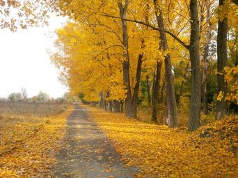 Keywords: path trail footpath autumn fall trees leaves yellow walking walkway road nature environment natural lifestyle hiking outdoors foliage country rural peaceful wilderness forest woods