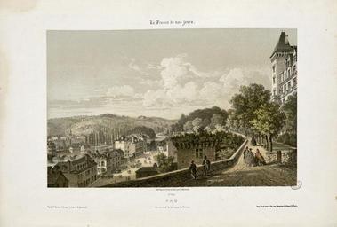 Keywords: Pau - Vue prise de la terrasse du Château - Fonds Ancely - B315556101 A MERCEREAU 7 041.jpg Impression en 3 coul par Frick frères à Paris Fait partie d'un ensemble de recueils de lithographies de Mercereau composés de lithographies provenant de La France de nos jours vaste suite publiée par livraisons de 1853 à 1876 et comprenant 475 planches en deux tirages l'un à deux teintes noir et bistre l'autre en couleurs Les libraires ont réuni ces planches en albums de composition variable quant au nombre de planches et aux dessinateurs Asselineau Mercereau Maurice Deroy etc Un titre Les Pyrénées par Ch Mercereau; Bagnères-de-Luchon par Ch Mercereau était frappé sur le plat supérieur de la reliure de l'album ainsi que le nom du Libraire pour lequel il était réalisé La plupart des recueils de ces planches pyrénéennes portent le nom de Sajous libraire à Bagnères-de-Luchon Pl 1 à 18 numérotées de 370 à 386 Pl 374 pl 5 et 6 en double -- Pl 19 20 et 21 numérotées respectivement 407 415 et 418 Ces trois pl ont été dessinées et lithographiées par Asselineau -- Pl 22 23 et 24 numérotées 438 439 et 440 -- Pl 22 lith par Aubrun -- Pl 25 numérotée 441 -- Pl 26 à 40 numérotées de 327 à 341 -- Pl 41 à 46 numérotées de 363 à 368 -- Pl 47 numérotée 369 -- Pl 48 num 292 -- Pl 49 et 50 num 264 et 265 -- Pl 51 et 52 num 268 et 269 -- Pl 53 à 55 num de 293 à 295 -- Pl 56 num 300 -- Pl 57 à 59 num de 307 à 309 -- Pl 60 à 70 num de 316 à 326 -- Pl 71 num 63 dessin et lith d'Asselineau imprimerie Destouches -- Pl 72 et 73 num 87 et 88 dessin et lith d'Asselineau imprimerie Destouches -- Pl 74 num 124 signée Lebreton éditée chez Lalonde à Paris et imprimée chez Becquet frères à Paris -- Pl 75 num 161 dessin et litho d'Asselineau imprimerie Destouches --Pl 76 à 78 num de 207 à 209 -- Pl 79 à 81 num de 211 à 213 -- Pl 82 num 220 dessin et lith de Maurice imprimerie Destouches -- Pl 83 à 86 num de 226 à 229 -- Pl 87 et 88 num 234 et 235 -- Pl 89 à 91 num de 273 à 275 -- Pl 92 et 93 num 290 et 291 Pièces jointes 6 pl sépia dont certaines sont des doubles du recueil de Mercereau Les cinq premières planches sont numérotées respectivement 318 321 324 331 386 La dernière planche n'est pas extraite de La France de nos jours mais de L'Espagne pittoresque et monumentale Ces six planches sont signées Mercereau éditées chez Sinnet et imprimées chez Frick frères Ancely René 1876 - 1966 Possesseur fre public domain domaine public B315556101_A_MERCEREAU_7_041 jpg image/jpeg 1 f de pl lithogr ; 31 cm Frick frères Imprimeur Sinnet F Éditeur http //numerique bibliotheque toulouse fr/collect/general/index/assoc//ark /74899/B315556101_A_MERCEREAU_7_041 dir/B315556101_A_MERCEREAU_7_041 jpg Bibliothèque municipale de Toulouse A-MERCEREAU 7-41 Creator Charles Mercereau http //catalogues toulouse fr/web2/tramp2 exe/do_keyword_search/log_in setting_key BMT1 servers 1home query p001665 St Jean-de-Luz intérieur de l'Eglise St Jean-de-Luz le Château de l'Infante Biarritz Vue générale prise du Phare Château de Mauvesin près Bagnères-de-Bigorre Hautes Pyrénées Bagnères de Bigorre Hautes Pyrénées - Intérieur de l'Eglise des Carmes en couleurs Bagnères de Bigorre Hautes Pyrénées - Intérieur de l'Eglise des Carmes Bagnères-de-Bigorre - Eglise et couvent des Carmes Bagnères-de-Bigorre Hautes-Pyrénées - Tour des Jacobins Cascade et Pont de Magenta Vallée de l'Esponne Hautes Pyrénées Cascade de Trémes-Aïgues Vallée de Grip Hautes Pyrénées St Sauveur Hautes Pyrénées - Le Pont Napoléon Bayonne - Eglise St André Arreau et la Vallée d'Aure Hautes Pyrénées - Vue prise au dessus de la route du Col d'Aspin Auch - Vue prise sur les bords du Gers Auch - Vue de la Cathédrale Auch - Intérieur de la Cathédrale Bagnères-de-Bigorre - Vue Générale prise de la Fontaine ferrugineuse Eaux-Bonnes Basses-Pyrénées - L'établissement Thermal et la Chapelle Nantes - Vue de l'Eglise Ste Croix Le Croisic - Plage des Baigneurs et Etablissement de Bains Le Folgoët - Vue de l'Eglise Brèche de Roland prise de Gèdres Hautes Pyrénées Eglise des Templiers à Luz Chapelle du couvent de Pouëlahun i e Pouey Lahun - Vallée d'Azun Hautes Pyrénées Le Pont de Scia - Route de Luz à Gavarnie Hautes-Pyrénées Vue de l'établissement de la Raillière près Cauterets Hautes-Pyrénées Vue générale de Cauterets prise du Mamelon Vert Hautes-Pyrénées Vue du Fort de Lourdes Hautes-Pyrénées Vue d'Argelès-de-Bigorre Hautes-Pyrénées Vue de St Sauveur Hautes-Pyrénées Le Pas de l'Echelle Route de Gavarnie Hautes-Pyrénées Fond de la Vallée d'Argelès prise de la terrasse de St Savin Hautes-Pyrénées Place Grammont à Pau Basses-Pyrénées Vue générale des Eaux-Bonnes Basses-Pyrénées Barèges et la Vallée du Bastan Hautes-Pyrénées Chute supérieure du Pont d'Espagne Hautes-Pyrénées La grotte miraculeuse à Lourdes Hautes-Pyrénées Eglise de Bétharram et Pont de Lestelle Basses Pyrénées Cascade du Cerizet Près Cauterets Hautes-Pyrénées Pic du Midi d'Ossau 2885m Basses Pyrénées - Vue prise du 3e plateau de Bious-Artigues Toulouse - Cloître du Musée Galerie du Moyen-Age Pau - Vue du Château prise du Parc Toulouse - Cloître du Musée et Clocher des Augustins Toulouse - La maison de pierre fragment de la façade Toulouse - Intérieur de St Sernin St Jean-de-Luz Fort du Socoa Toulouse - Vue du Capitole Bordeaux Vue de la Porte du Caillau i e Cailhau Bordeaux Porte de la grosse Cloche Bordeaux Vue des Quinconces Bordeaux - Vue de la Tour et de l'Eglise de St Michel Toulouse - Vue du Pont de pierre prise du Quai de Brienne Toulouse - Abside de l'Eglise de St Sernin de l'an 1097 Toulouse - Choeur de la Cathédrale St Etienne Rouen - Hôtel de Bourgtheroulde Biarritz - Vue des Bains Napoléon et du Casino Biarritz - Vue des Bains du Port Vieux Biarritz - Vue de l'Entrée de la Ville à l'arrivée de Bayonne Le Lac Bleu Hautes-Pyrénées V