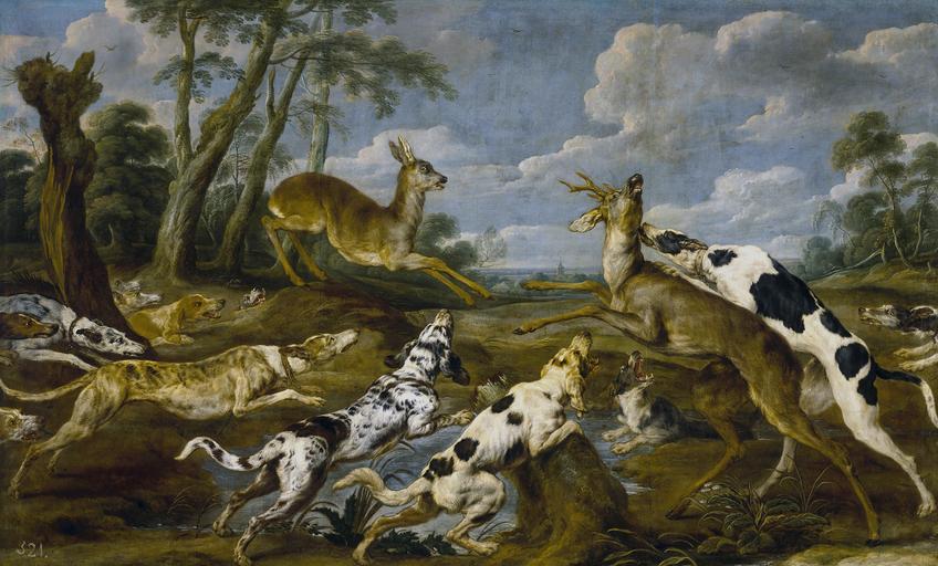Keywords: Paul de Vos - Deer Hunt.jpg Artwork en Deer hunt de Rehjagd Oil canvas cm 212 347 Madrid Institution Museo del Prado https //www museodelprado es/coleccion/galeria-on-line/galeria-on-line/obra/caceria-de-corzos/ Mid Other date century 17 creator Paul de Vos Other versions PD-old-100 Paintings by Paul de Vos in the Prado Museum Baroque paintings of animals Paintings of deer hunting Paintings of roe deer 17th-century paintings of dogs