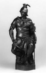 Keywords: Paul Dubois - Military Courage - Walters 27585.jpg While studying in Italy from 1859 to 1863 Dubois was profoundly influenced by Italian Renaissance sculpture This work was inspired by Michelangelo's statue from the tomb of Lorenzo de' Medici in Florence Dubois originally sculpted this piece along with Charity Meditation and Faith as the corner statues for the tomb erected in the cathedral of Nantes France for General Jucault de Lamoricière 1806-65 a commander of the French army in North Africa The Barbedienne foundry later issued this sculpture in various sizes A life-size version donated to Baltimore by William T Walters in 1885 stands in the Mount Vernon Place modeled 1876 bronze cm 67 9 accession number 27 585 40889 William T Walters Baltimore ca 1886 mode of acquisition unknown Henry Walters city Baltimore Walters Art Museum Henry Walters Acquired by William T Walters ca 1886 Signature On back of base P Dubois War à la Mode Military Painting from the Forbes Collection The Walters Art Gallery Baltimore 1977 Harborplace Light Street Pavilion Special Display Harborplace Baltimore 1980 place of origin France Walters Art Museum license Paul Dubois Media contributed by the Walters Art Museum needs category review Sculptures in the Walters Art Museum Courage |