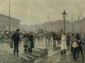 Keywords: Paul Fischer - Fisk marked ved Gammelstrand, København.jpg Artwork Creator Paul Gustav Fischer Fiskemarked ved Gammelstrand København 1919 oil canvas cm 90 8 121 9 object history Provenance Sale Sotheby's London June 20 1989 lot 50 illustrated<br/>Acquired at the above sale by the present owner credit line signed PAUL FISCHER and dated 1919 lower right accession number http //www sothebys com/en/ecat/lot render html/2010/19th-century-european-art-n08630/lotNum/41 Sotheby's PD-old-auto-1923 1934 Paul Gustav Fischer History of Copenhagen Paintings of Copenhagen 1919 paintings Images from Sotheby's Gammel Strand |