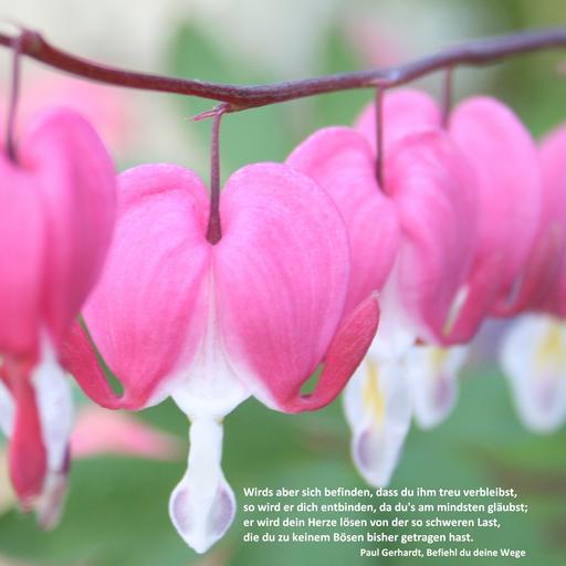 Keywords: Paul Gerhardt Wirds aber sich befinden.jpg Paul Gerhardt Text Paul Gerhardt Foto Public domain Collage Schwäbin own 2013-01-22 PD-old-100 Befiehl du deine Wege Close-ups of Lamprocapnos spectabilis flowers