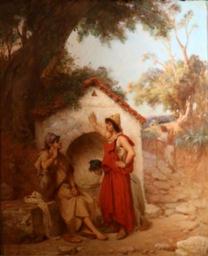 Keywords: Paul Jean Baptiste Lazerges - Algériennes autour de la fontaine.jpg Artwork Creator Paul Jean Baptiste Lazerges 1886 oil on Canvas Size cm 51 64 Institution Musée des Beaux-Arts de Narbonne place of discovery object history exhibition history credit line accession number 2010-1-1 http //webmuseo com/ws/musees-narbonne/app/collection/record/282 vc ePkH4LF7w6yelGA1iJkSKelDHzOIkKIBmht8EqtSgd4qBlfOsMAAAL1zLdk place of creation own PD-old-100 cc-by-sa-4 0 Painting from Musée des Beaux-Arts de Narbonne Paul Jean Baptiste Lazerges |