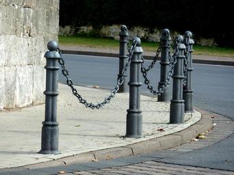Keywords: pavement walk road barrier security regulation preventive demarcation chain pillar post stone asphalt patch grey masonry bad sooden-allendorf
