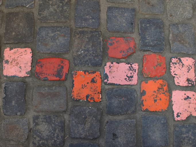 Keywords: paving stones ground road cobblestones background pattern structure paved city stone go sidewalk pavement old town pink red mark tagged highlighting highlighted texture