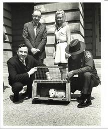 | Keywords: people groupshot blackandwhite photo border monochrome black and white Slow Poke is granted clemency in front of the Governor's Mansion, July 31, 1970. L-R: Governor Bob Scott, Tom Ellis, "Miss Possum" Margaret Ann Wilkes, and Larry Barnes of the state Wildlife Commission. Photo from PC.1317 Scott Papers, State Archives of North Carolina, Raleigh, NC. Please read the entire story in the NCpedia, State Library of North Carolina - ncpedia.org/slow-poke-possum. Slow Poke is granted clemency in front of the Governor's Mansion, July 31, 1970. L-R: Governor Bob Scott, Tom Ellis, "Miss Possum" Margaret Ann Wilkes, and Larry Barnes of the state Wildlife Commission. Photo from PC.1317 Scott Papers, State Archives of North Carolina, Raleigh, NC. Please read the entire story in the NCpedia, State Library of North Carolina - ncpedia.org/slow-poke-possum. |