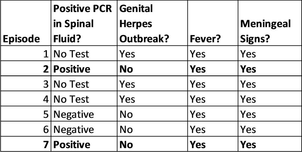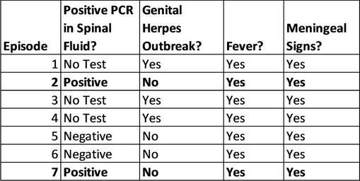 | Keywords: PCR tests of Mollaret's Meningitis patient from Kojima et al, 2002.jpg en This shows the results of polymerase chain reaction tests on a chronic Mollaret's meningitis patient along with symptoms 2014-09-21 09 20 16 Yuki Kojima Hideyuki Hashiguchi Tomoko Hashimoto Sadatoshi Tsuji Hiroshi Shoji and Yukumasa Kazuyama 2002 Recurrent Herpes Simplex Virus Type 2 Meningitis A Case Report of Mollaret's Meningitis Jpn J Infect Dis 55 85-88 2002 Downloaded from http //www0 nih go jp/JJID/SC-29 pdf 9-21-2014 Yuki Kojima Hideyuki Hashiguchi Tomoko Hashimoto Sadatoshi Tsuji Hiroshi Shoji and Yukumasa Kazuyama Custom license marker 2014 09 21 PD-Japan-exempt Publication of Japanese government in open access journal Japanese Journal of Infection Diseases at http //www0 nih go jp/JJID/jjid html Uploaded with UploadWizard Meningitis |