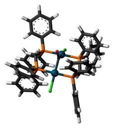Keywords: Pd2Cl2(CO)(dppm)2 3D stick.png Stick model of the Pd2Cl2 CO dppm 2 complex a typical A-frame complex Colour code 505050  Carbon  C  black<br> F0F0F0  Hydrogen  H  white<br> F51E1E  Oxygen  O  red<br> FA8C00  Phosphorus  P  orange<br> 14F014  Chlorine  Cl  green<br> 006881  Palladium  Pd  teal<br> 2011-07-03 own DS Visualizer Jynto talk Ball-and-stick version Space-filling version Skeletal stick version cc-zero Images by Jynto Palladium complexes Dppm complexes chloro complexes carbonyl complexes