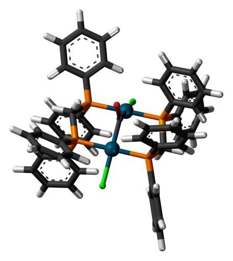 MAKE A MEME View Large Image Pd2Cl2(CO)(dppm)2 3D stick.png Stick model of the Pd2Cl2 CO dppm 2 complex a typical A-frame complex Colour code 505050  Carbon  C  black<br> F0F0F0  Hydrogen  H  white<br> F51E1E  Oxygen  O  red<br> FA8C00  Phosphorus  P ...