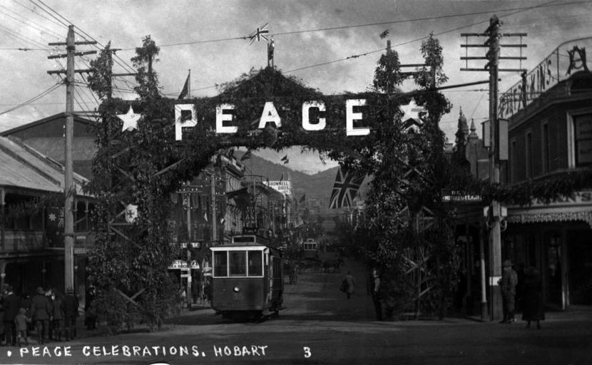 MAKE A MEME View Large Image Liverpool St during peace celebrations, 1918. West Hobart tram no. 35 in Liverpool St during peace celebrations, 1918.