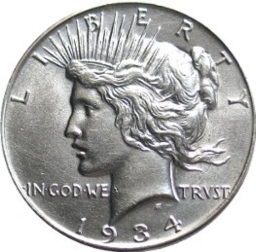 | Keywords: Peace dollar obverse.jpg en Obverse of peace dollar ru Аве с ми ного долла а http //en wikipedia org/wiki/File Peace_dollar_obverse jpg Photo was made by User Bobby131313 PD-USGov PD-USGov Peace dollar Photo taken by user bobby131313 and may be used freely with following credit Image courtesy of http //www coincommunity com/CCF-Numismatics/ CCF Numismatics 1934 coins |