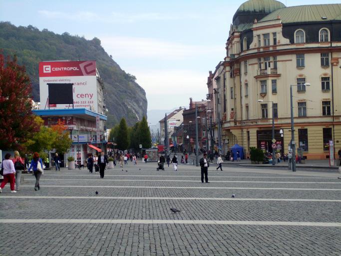 Keywords: peace square city urban backdrop hill sky people paved ústí nad labem czechia