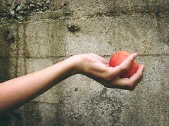 Keywords: peach fruit hand give