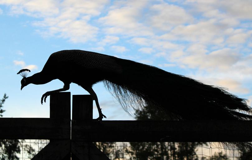 Keywords: peacock silhouette feather tail prowl nature animals