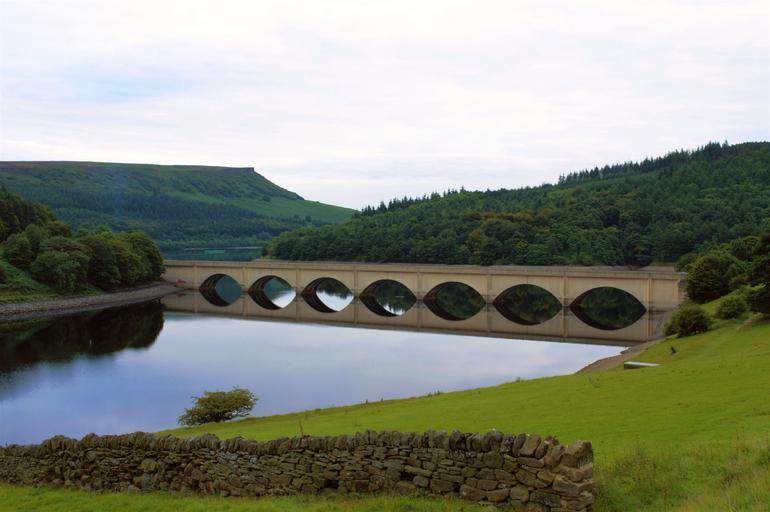 Keywords: peak district reservoir ladybower reservoir bridge arch a57 snake pass trees calm water reflections